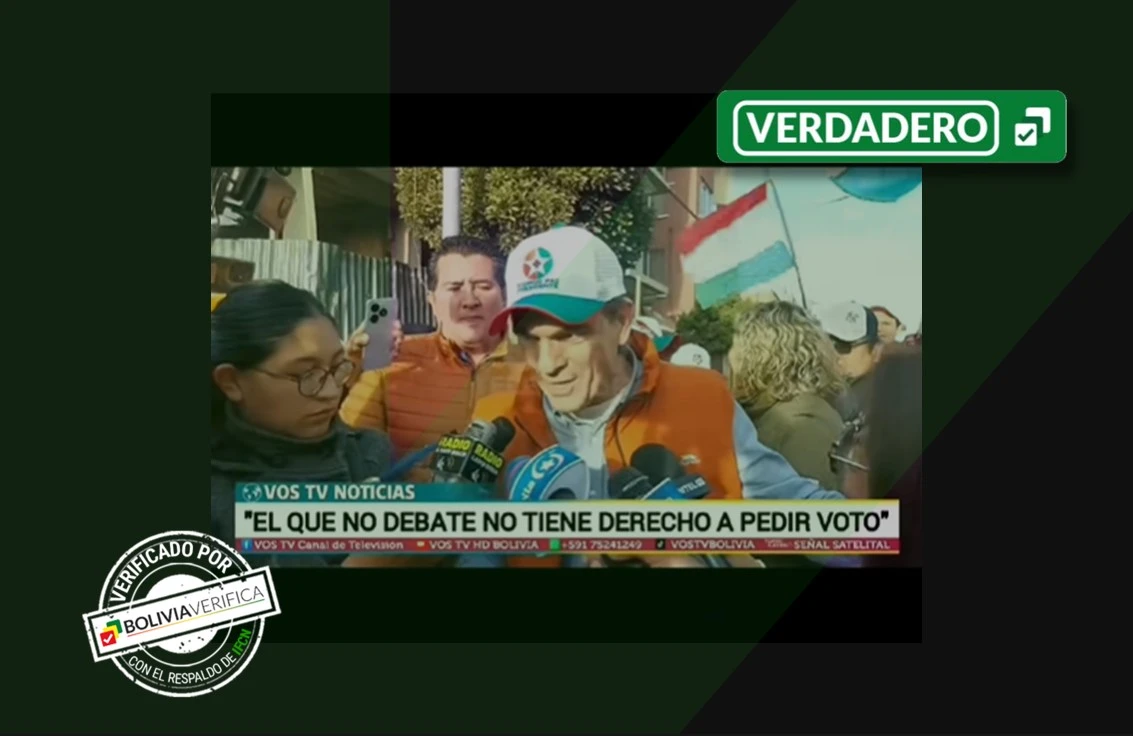 La declaración verdadera corresponde al 10 de agosto de 2025, durante su acto de campaña en la ciudad de El Alto, siete días antes de las elecciones generale.