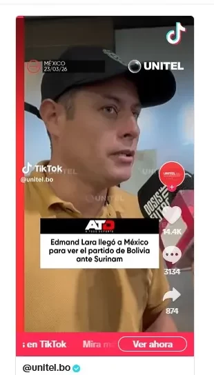 La entrevista original a Lara fue de este 23 de marzo. En ella, expresó su apoyo a la selección boliviana ante el partido de repechaje contra Surinam, programado para el 26 de marzo en México, según informaron medios como Unitel.