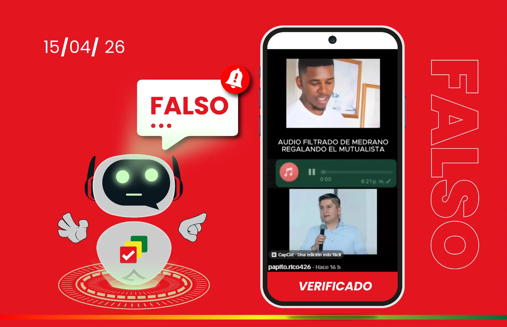 Tomamos contacto con Juan Carlos Medrano, quien confirmó que el audio es falso. Del mismo modo, el equipo de comunicación de Juan Pablo Velasco indicó que el contenido no es auténtico.