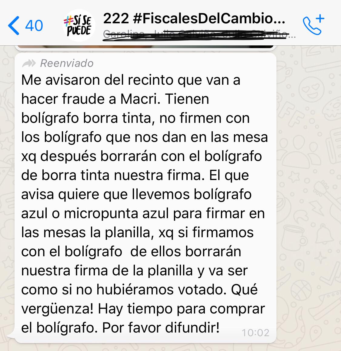 En la mayoría de los grupos donde es compartido el contenido se alerta del armado de un «fraude electoral».