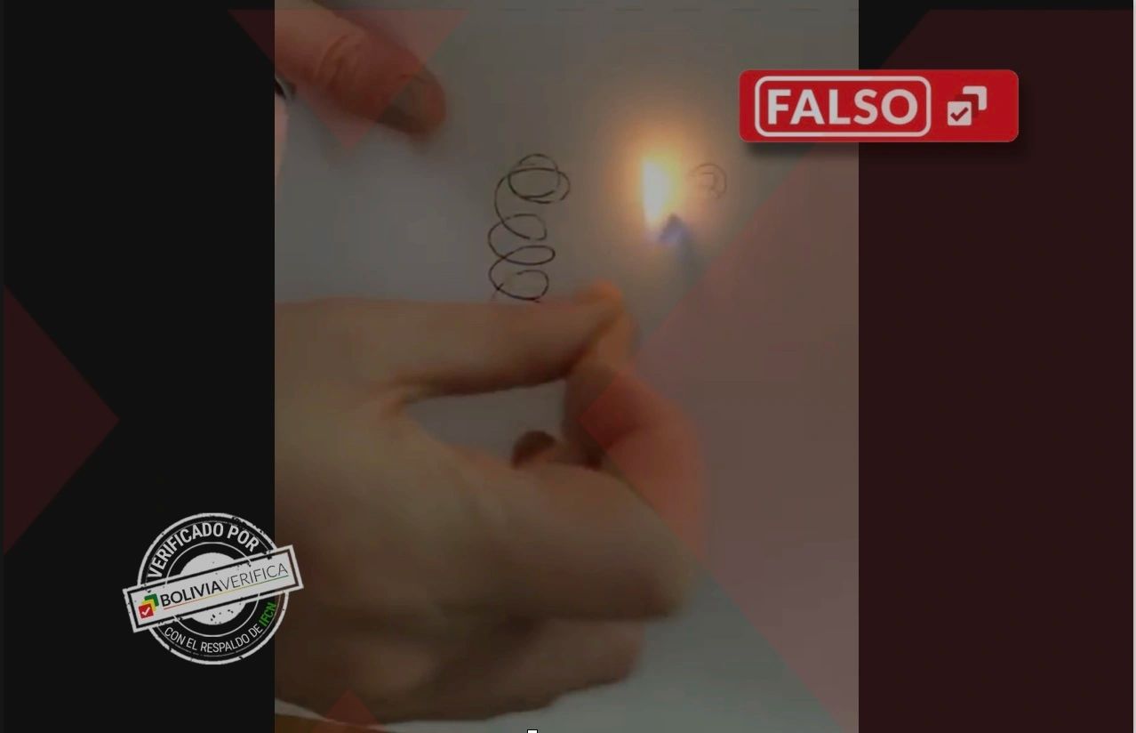En el contexto de las elecciones generales 2025 es difundido un video por redes de mensajería instantánea como Telegram y WhatsApp donde se alerta de un presunto «fraude», al advertir que la tinta que entrega el ente electoral desaparece con el calor del fuego; sin embargo, el contenido es falso. El video no tiene relación con Bolivia y el TSE no está distribuyendo este tipo de lapiceras.