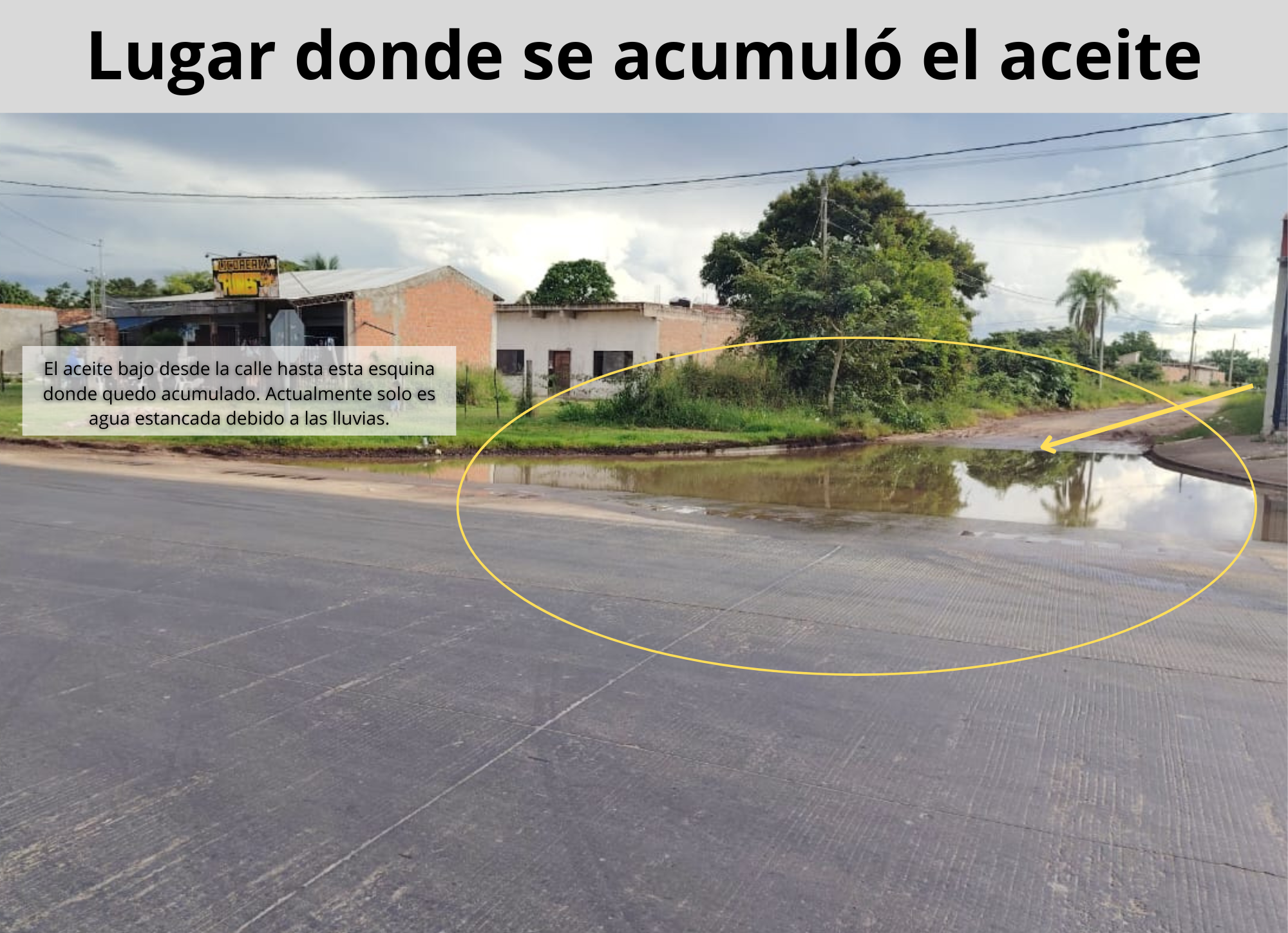 Vecinos del lugar indicaron que el hecho ocurrió el 7 de febrero y no fue provocado por el accidente de una cisterna, sino por la ruptura de un tanque de almacenamiento de aceite en una empresa distribuidora ubicada detrás del lugar.