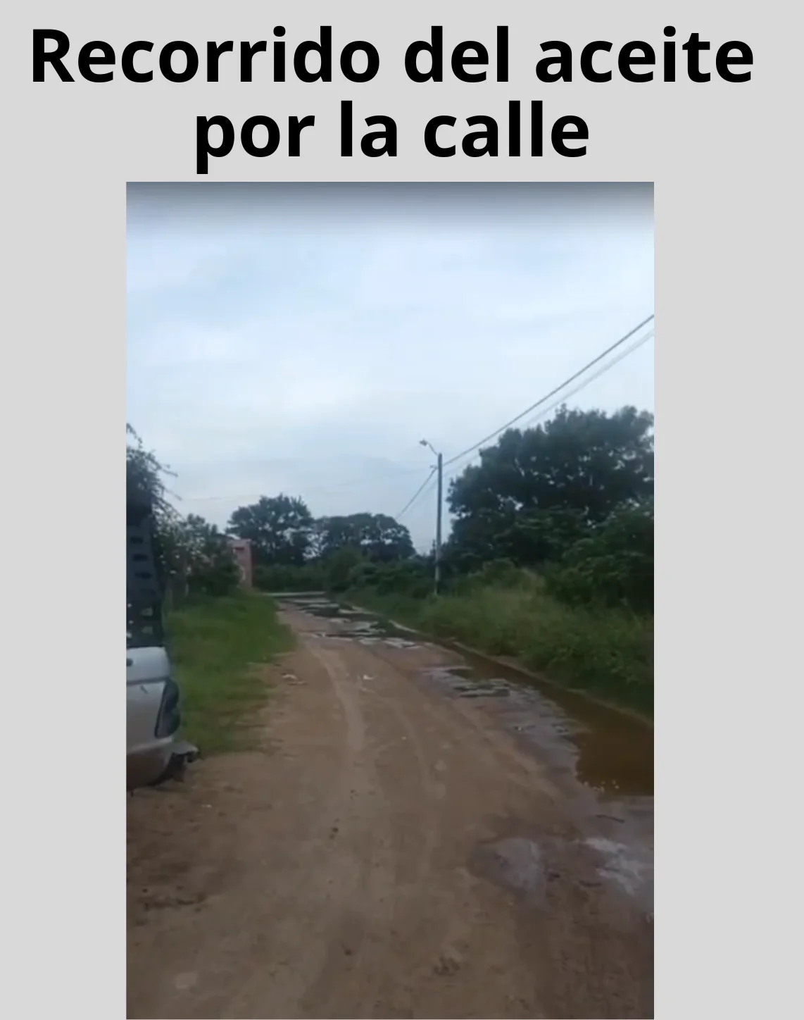 Según su testimonio, el incidente ocurrió un sábado por la noche. “Fue como a las 7 u 8 de la noche cuando se reventó. El aceite empezó a bajar por toda la calle y se llenó esta parte”.