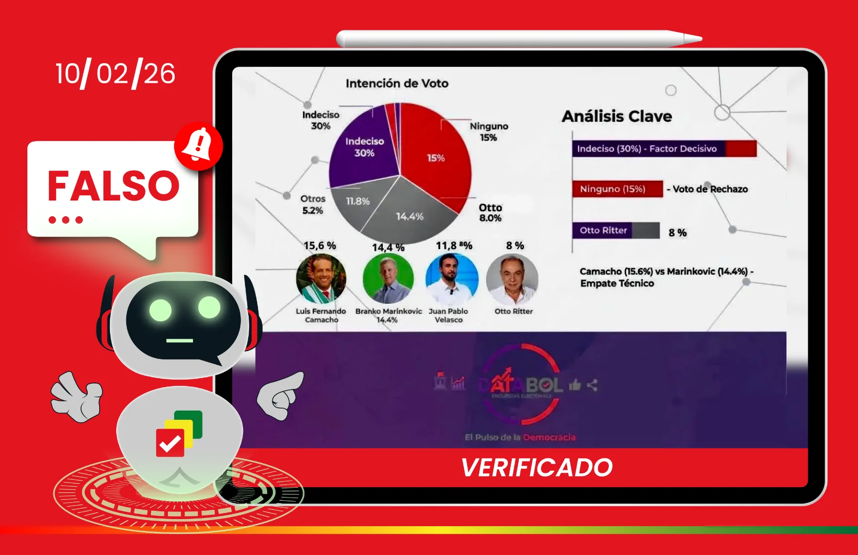 Desde el 15 de enero a las 16:37 circula en redes sociales una encuesta publicada por la página “Encuestas Databol”, bajo el título: “Así arranca la preferencia electoral para la Gobernación de Santa Cruz”. La publicación registró 177 reacciones, 137 comentarios y fue compartida 109 veces. Sin embargo, el contenido no cumple con los requisitos exigidos para considerarse una encuesta electoral válida.