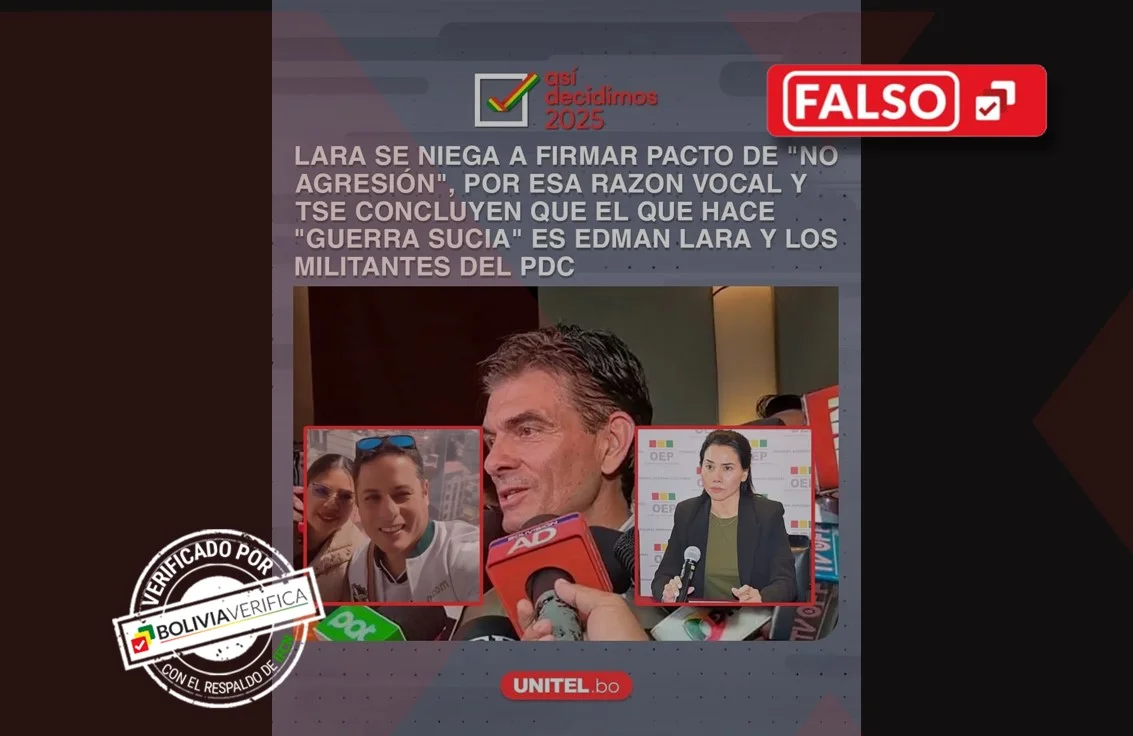 El equipo de prensa del PDC, que también desmintió la publicación, aclaró que Edmand Lara no se negó a firmar el pacto de “no agresión”. Indicaron que lo haría en las horas siguientes del viernes 12 de septiembre.