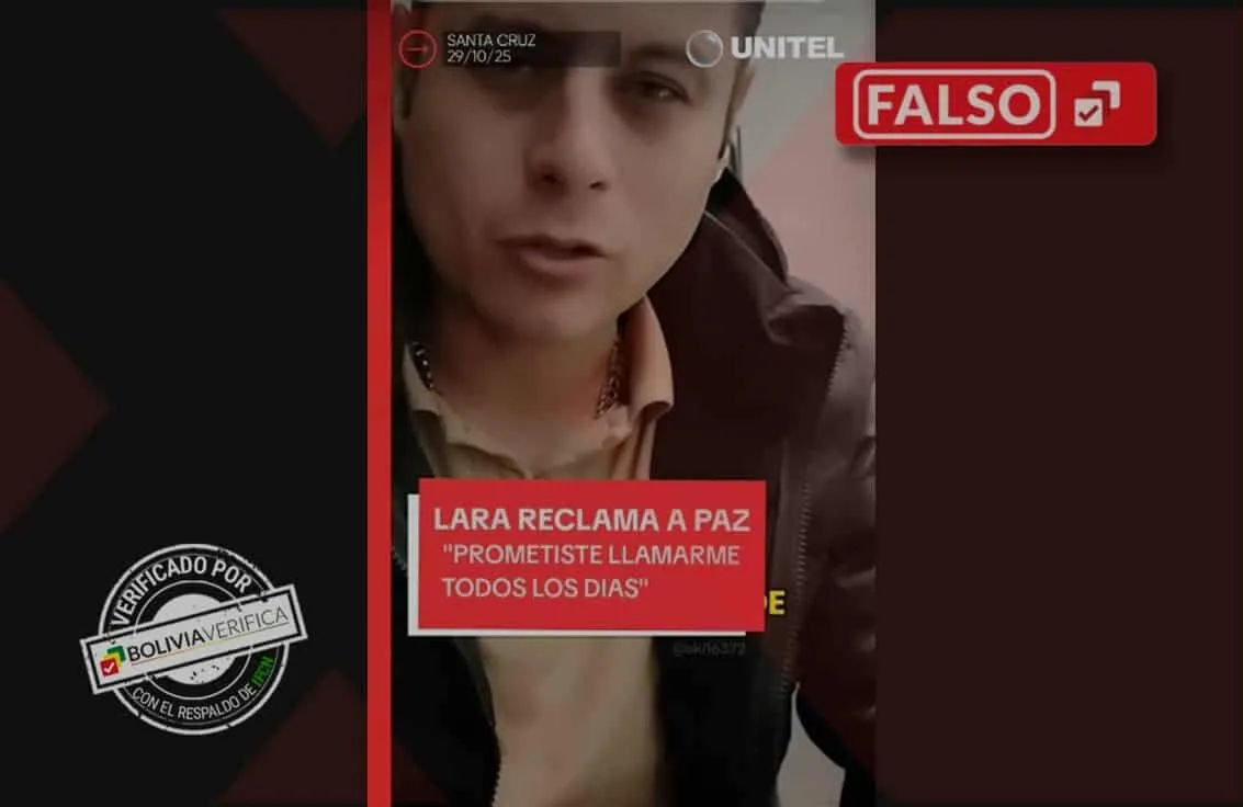 A través de TikTok circula un video con la línea gráfica del medio Unitel, en el que se muestra al vicepresidente electo Edmand Lara reclamando a Rodrigo Paz por no cumplir la promesa de llamarle todos los días. Pero este contenido es falso porque el material original no tiene relación con el tema que se le atribuye.