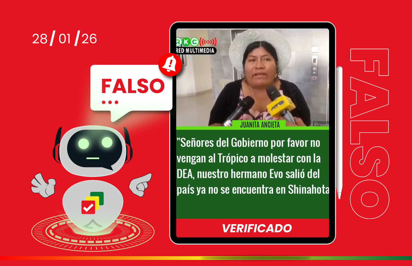 Tras un monitoreo en las plataformas oficiales de Radio Kawsachun Coca, no se halló registro alguno de que Ancieta afirmara que Morales abandonó el país o que solicitara al Gobierno no ingresar al Trópico de Cochabamba con la DEA. En sus intervenciones más recientes, registradas en diciembre, Ancieta se limitó a desmentir presuntos vínculos con irregularidades en el Fondo de Desarrollo para los Pueblos Indígenas Originarios y Comunidades Campesinas (Fondioc).