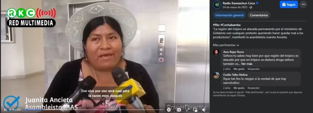 Esta se hizo el 24 de mayo de 2023. En ella, Ancieta afirma que la región del trópico es atacada permanente por el Ministerio de Gobierno, aprovechando cualquier pretexto para desacreditar a los dirigentes de esa zona.