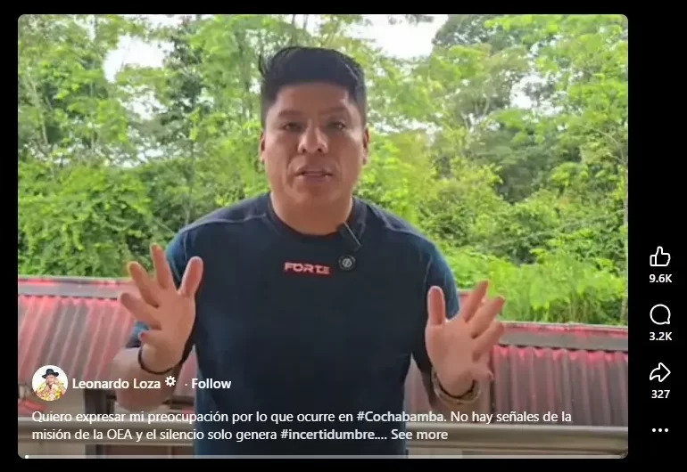 En este mensaje, Loza exige mayor transparencia y afirma haber ganado con más del 16% de los votos. Sin embargo, en ningún momento menciona al presidente de Cuba ni hace referencia al uso de yuanes.