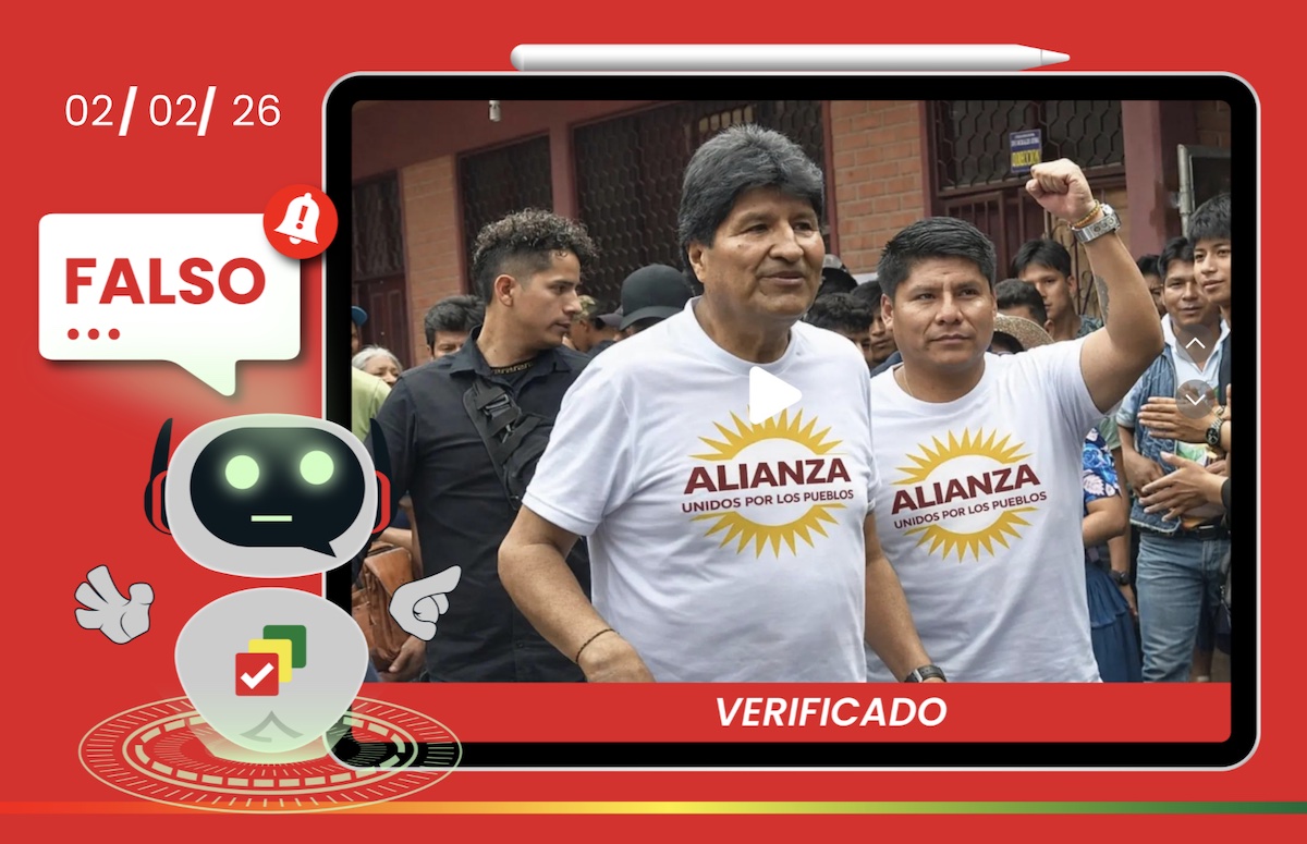 Bolivia Verifica consultó a dos altos dirigentes del movimiento Evo Pueblo ante la difusión de una imagen que supuestamente mostraba al expresidente Evo Morales reapareciendo en Cochabamba el 1 de febrero de 2026. Tanto el exdiputado Héctor Arce como el asambleísta departamental Sergio de la Zerda, coincidieron en que la fotografía es falsa.