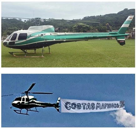 Imagen de un helicóptero con mensaje contra Fernando Costa es falsa