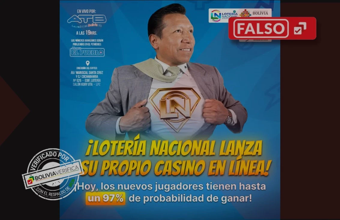 ¿La Lotería Nacional de Bolivia (Lonabol) lanzó su propio casino en línea? No, la imagen que circula en Facebook que invita a los usuarios a ser parte de este juego es falso; se trata de una estafa digital.