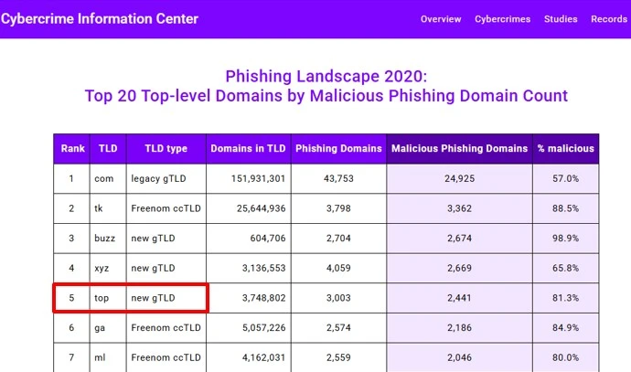 Ambos dominios terminan en top, un tipo de extensión frecuentemente usadas en campañas fraudulentas y que además son parte de un ranking de enlaces maliciosos.