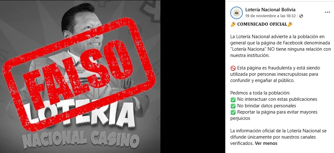 El equipo de Bolivia Verifica se contactó con personal de la Lonabol, quienes confirmaron que la institución no tiene ningún casino en línea ni aplicaciones de apuestas. También publicaron una aclaración en su página oficial advirtiendo a la ciudadanía sobre este tipo de contenidos.