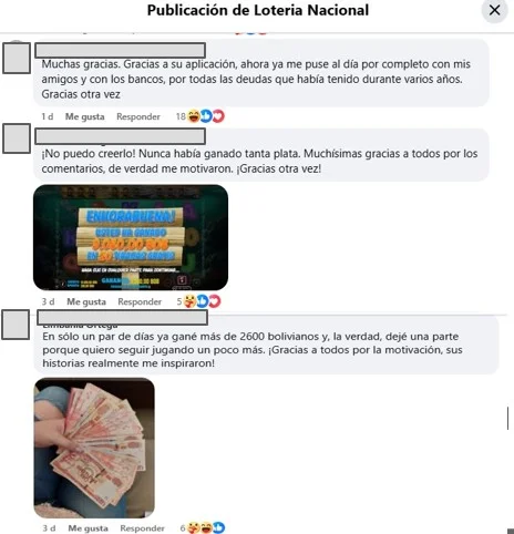 «Miles de bolivianos ya están jugando todos los diás y cobrando premios reales», indica el mensaje.