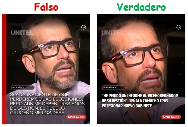 La publicación no corresponde a algún contenido difundido por Unitel ni a declaraciones reales del gobernador de Santa Cruz.