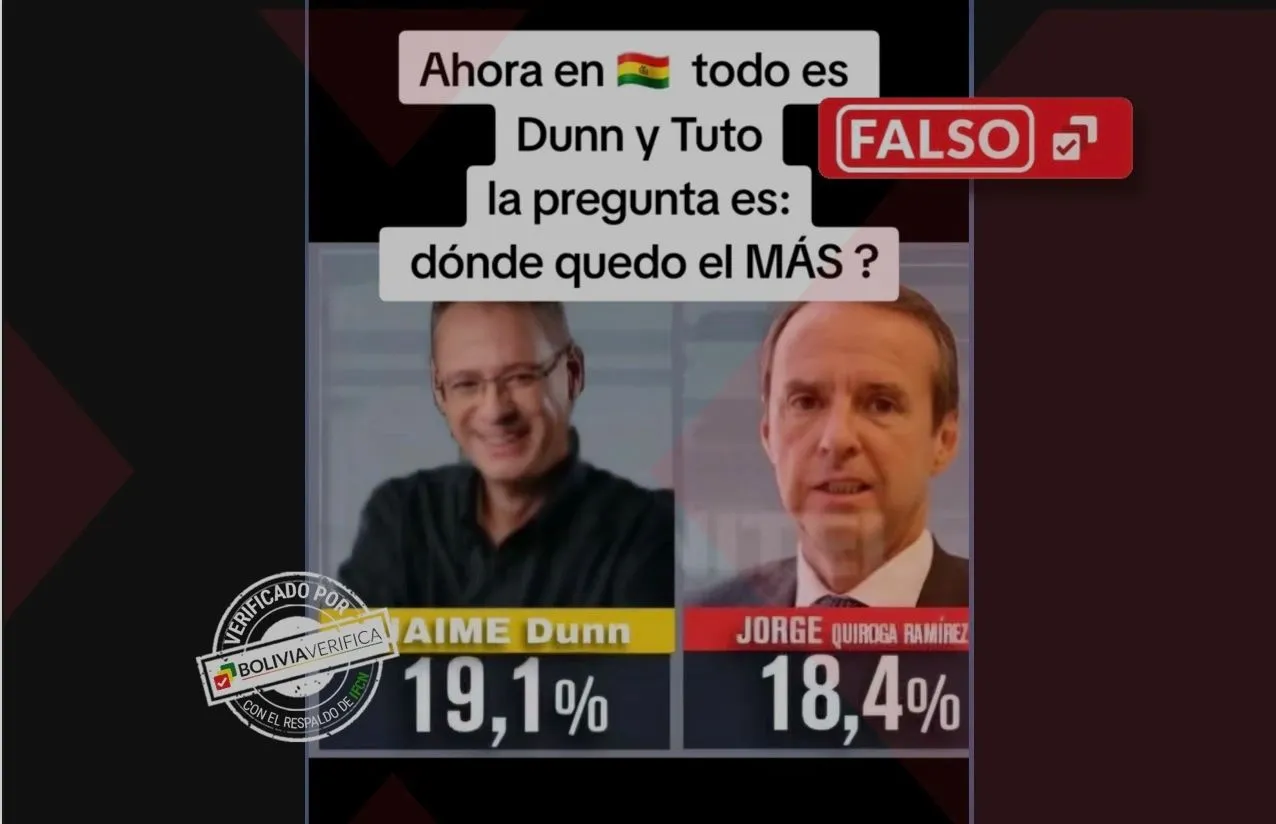 Un video que circula en Tik Tok muestra a Jaime Dunn y a Edgar Uriona como el binonio oficial del partido Nueva Generación Patriótica (NPG), pero el contenido es falso, porque el Tribunal Supremo Electoral (TSE) inhabilitó la candidatura de Dunn.