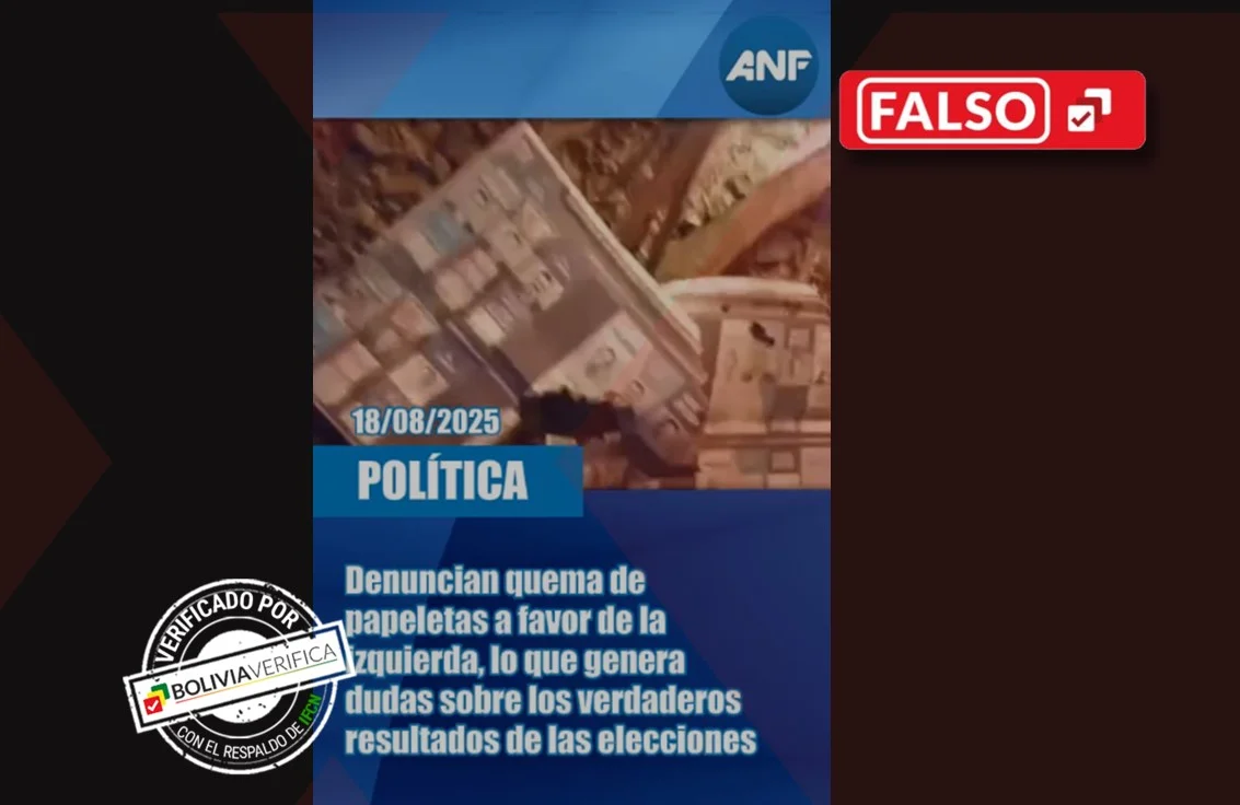 Un video que circula en Tik Tok muestra papeletas electorales marcadas a favor de Eduardo del Castillo (MAS) y Andrónico Rodríguez (Alianza Popular) siendo quemadas. Sin embargo, un análisis realizado por Bolivia Verifica estableció que se trata de una producción montada para generar dudas sobre los resultados preliminares y el avance del cómputo oficial de los comicios del domingo 17 de agosto. Por tanto, este contenido es falso.