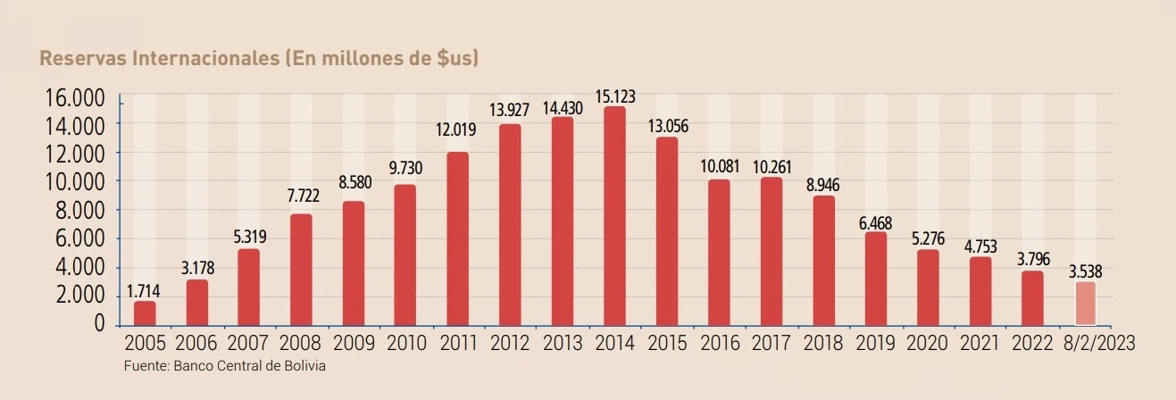 Este cuadro elaborado por Fundación Jubileo con datos del CBC muestra la caída de las reservas.