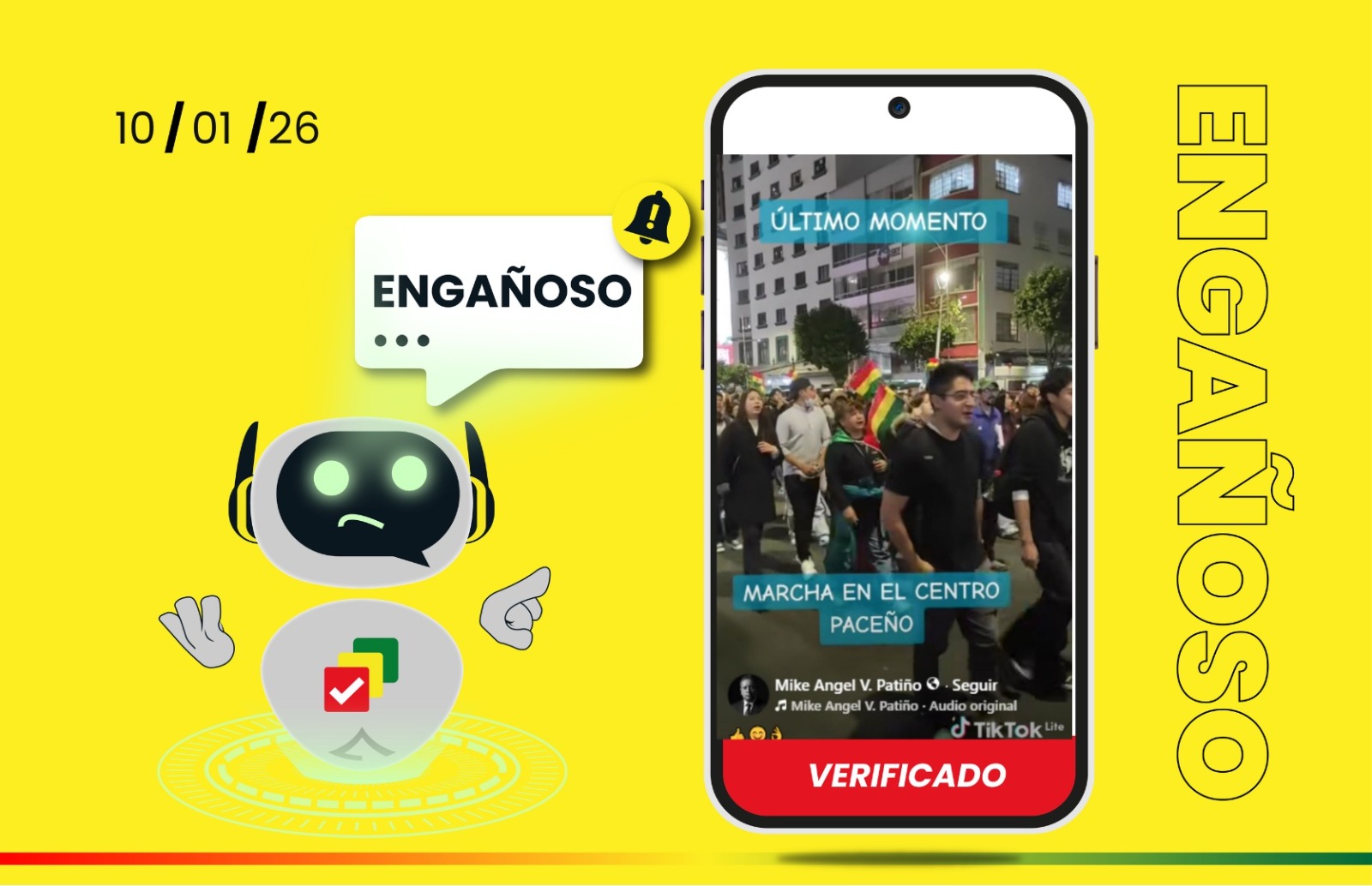 En Facebook circula un video que muestra una marcha en el centro de La Paz con banderas de Bolivia como si fuese actual; sin embargo, se trata de un material del 20 de octubre de 2025, por lo que se considera engañoso.