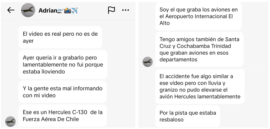 Bolivia Verifica se contactó con el autor original del video, quien confirmó que el material no fue generado con inteligencia artificial y que fue grabado meses antes del accidente. Asimismo, explicó que el contenido fue reutilizado recientemente fuera de contexto por otra cuenta.