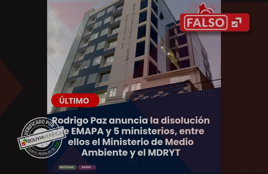 En la página Boliviana Digital Radio se publicó una imagen con un titular que afirma que el presidente electo Rodrigo Paz habría anunciado el cierre de la Empresa de Apoyo a la Producción de Alimentos (EMAPA) y de cinco ministerios. No obstante, este producto es falso porque la nueva autoridad no determinó cómo será su gabinete.