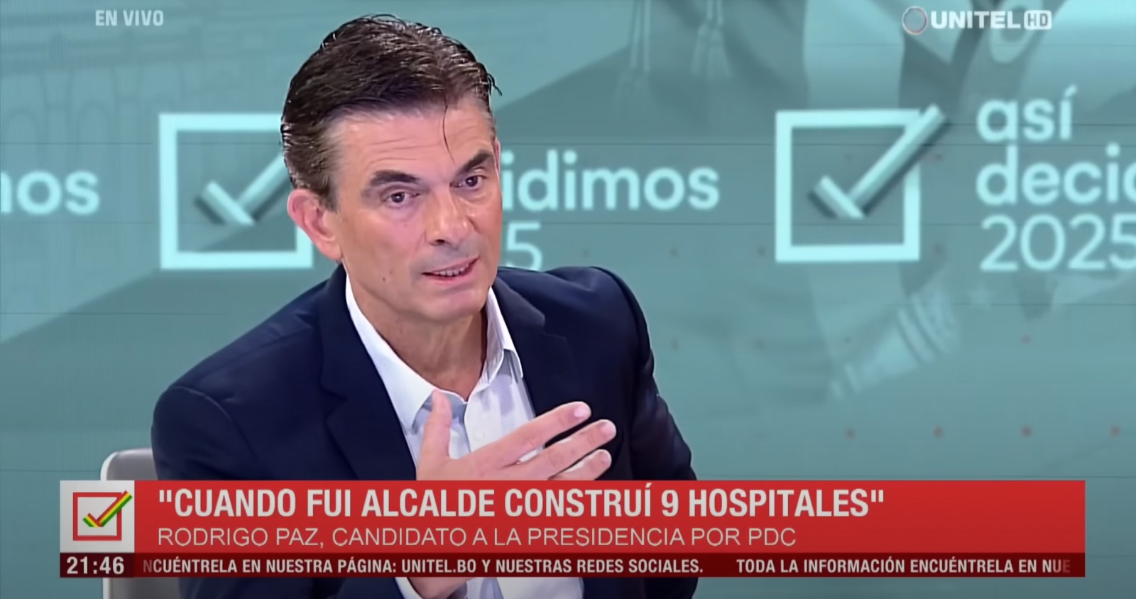 Paz en la entrevista con Unitel declaró que en su gestión de alcalde fueron construidos nueve hospitales.“Cuando era alcalde hicimos nueve hospitales, pido que comparen con cualquier otra gestión, hacer nueve hospitales en cuatro años… porque el quinto (año) estuvo el covid”.