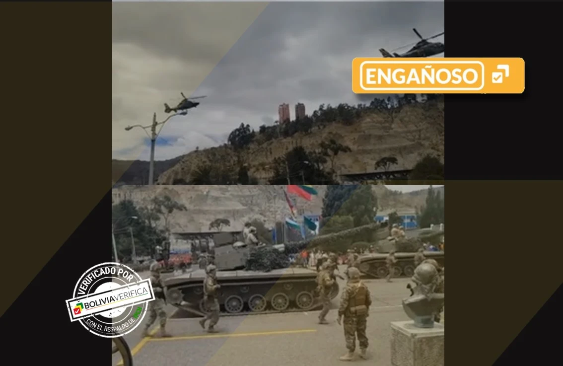 Las imágenes de los militares, tanques y vehículos que se ven en el bulo no son actuales. No se trata de uniformados que apoyan a Evo Morales. Las fotografías corresponden a un acto por el aniversario del colegio militar del Ejército, el cual fue organizado por el Ministerio de Defensa.