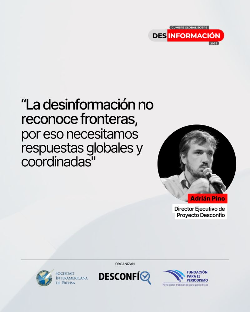 La Cumbre Global sobre Desinformación 2025 se realizará los días 17 y 18 de septiembre, en formato 100% virtual, gratuito y con traducción simultánea en español, inglés y portugués. El evento es liderado por el periodista entrerriano Adrián Pino, Director Ejecutivo de Proyecto Desconfío, la iniciativa que investiga y entrena periodistas para frenar la desinformación.