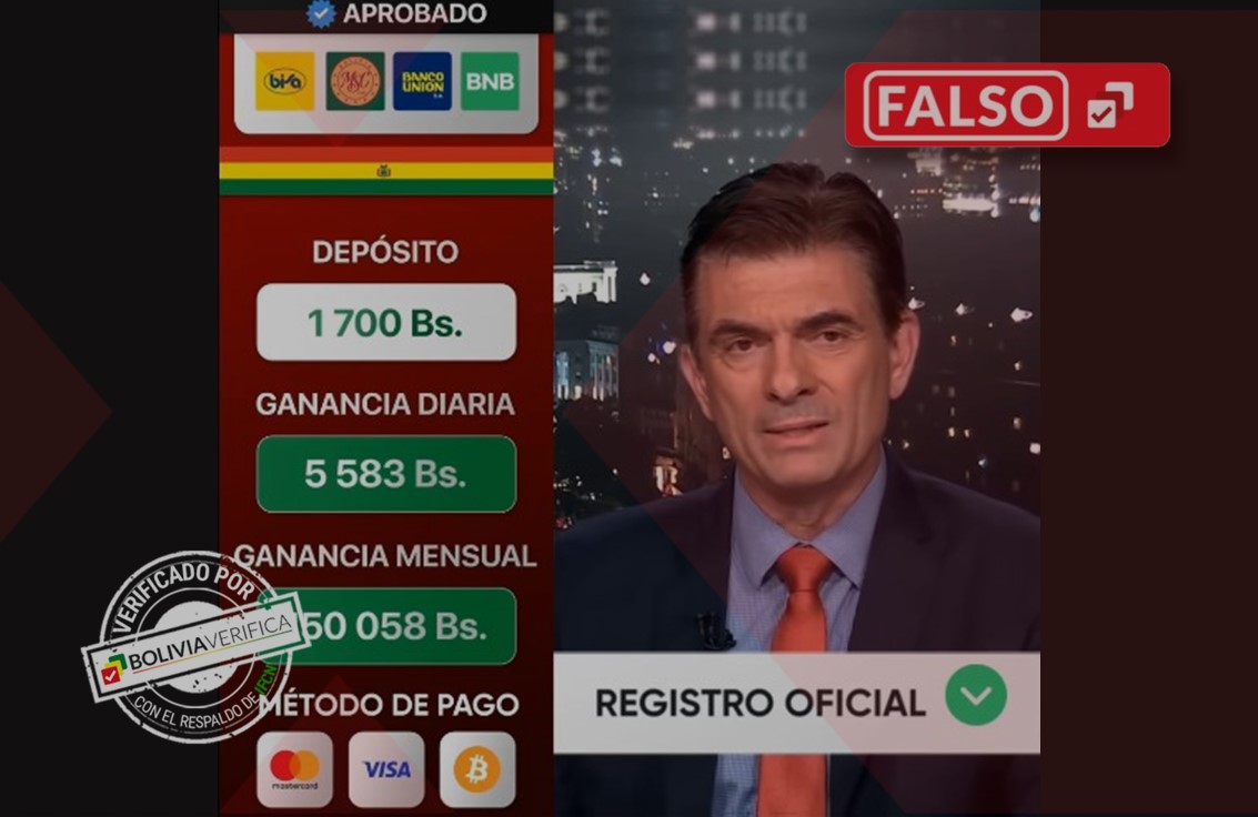 Este tipo de contenidos fraudulentos se repiten con frecuencia. Bolivia Verifica ya desmintió videos similares (1 y 2) en los que se utilizó la imagen de Rodrigo Paz e incluso del economista Gabriel Espinoza para promover inversiones falsas o “programas de pensiones” inexistentes.
