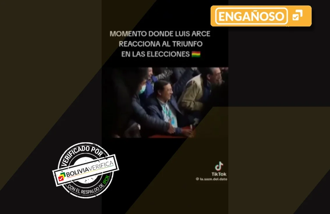 En grupos de WhatsApp y otras redes sociales circula un video en el que se observa al presidente Luis Arce y al vicepresidente David Choquehuanca celebrar junto a sus seguidores «el triunfo de las elecciones». Sin embargo, el material corresponde a los resultados de 2020 y no del 17 de agosto de 2025, por lo que este material fue catalogado como engañoso.