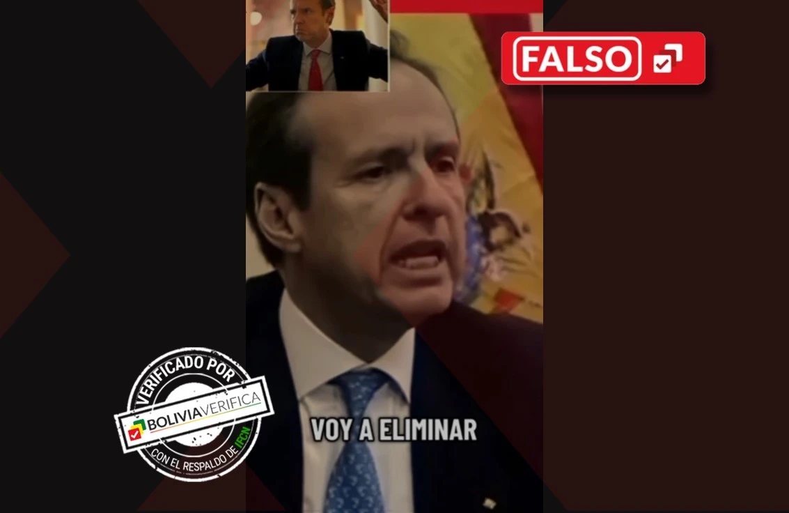 Un video que se comparte por TikTok muestra al candidato presidencial por Alianza Libertad Jorge Tuto Quiroga afirmando que eliminará la salud y la educación pública y algunos bonos sociales. Sin embargo, se trata de un material manipulado con inteligencia artificial y, por lo tanto, completamente falso.